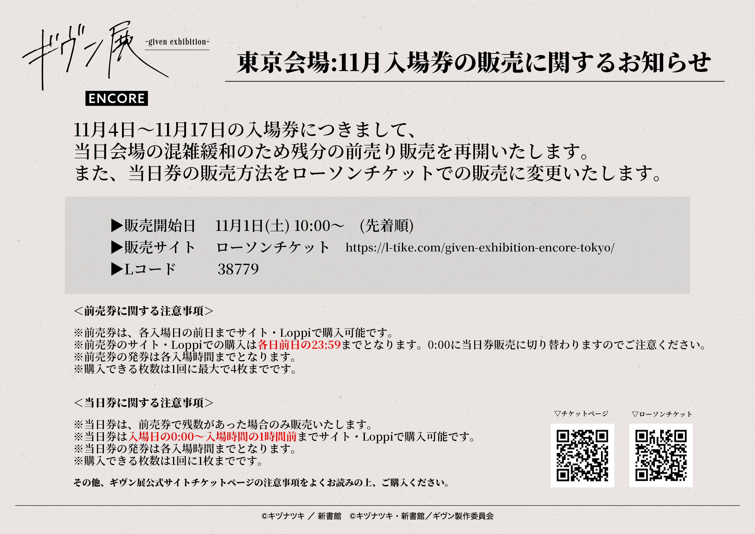 ENCORE東京会場 11月入場券の販売につきまして[2025.10.31]